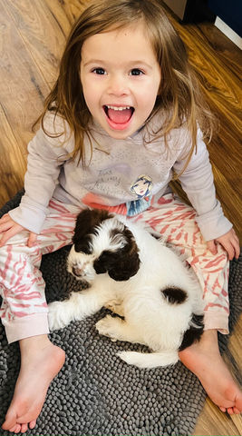 Your puppy will be a part of our family during that time and will participate in all that we do while being taught appropriate manners, household rules and basic skills. Puppies will be exposed to young children, and dogs of all ages and sizes.